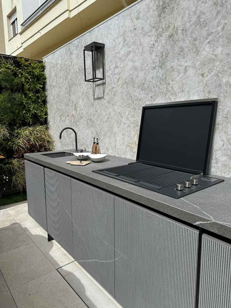 Las edificaciones efímeras con pérgolas bioclimáticas muy versátiles y bien resueltas.