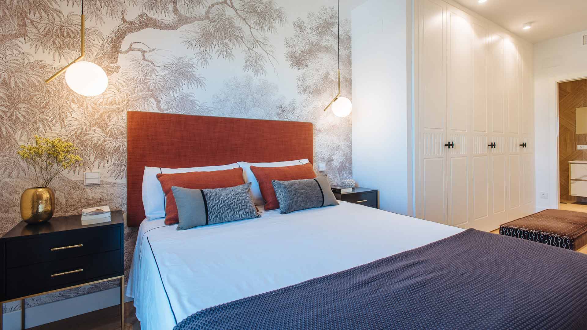 Para el dormitorio principal de Casa Barrau, un dormitorio en suite, ¡con vestidor y baño incorporados queríamos conseguir un ambiente envolvente que apeteciera descansar y nos encantase estar allí!