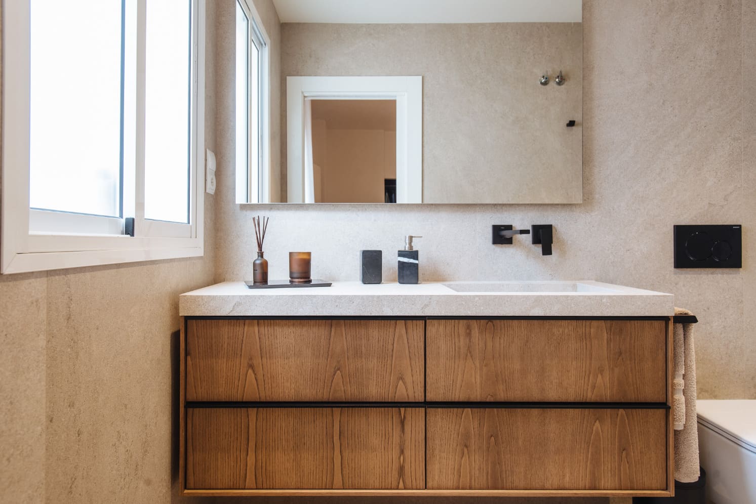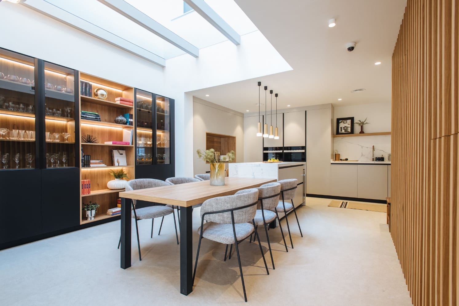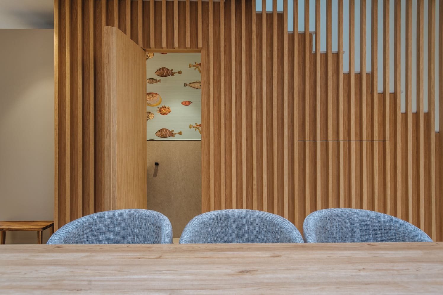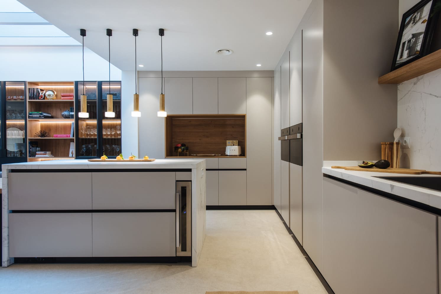 El proyecto Casa Osuna es el resultado del encargo de una redistribución total de planta baja, los propietarios habían estado valorando la posibilidad de mudarse a otra vivienda o darle la vuelta total a la suya ya que no reunía los requisitos actuales de la familia, una vez tomaron la decisión de quedarse en la vivienda actual realizamos un proyecto de renovación total, tanto a nivel distribución de espacios como a nivel estético y funcional. Los objetivos estaban claros, una casa actual, que invitara a disfrutar de todos los espacios en familia.