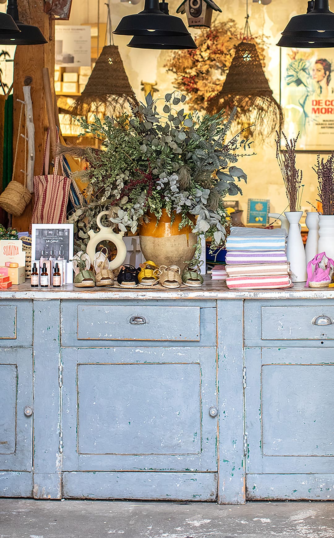 Queríamos una imagen con muebles singulares en los que se viera el paso del tiempo con una página especial, pero también necesitábamos exponer una gran cantidad de artículos con lo que se diseñaron Muebles, a medida de estilo clásico pintados a mano y con una iluminación integrada que da vida a cada artículo.