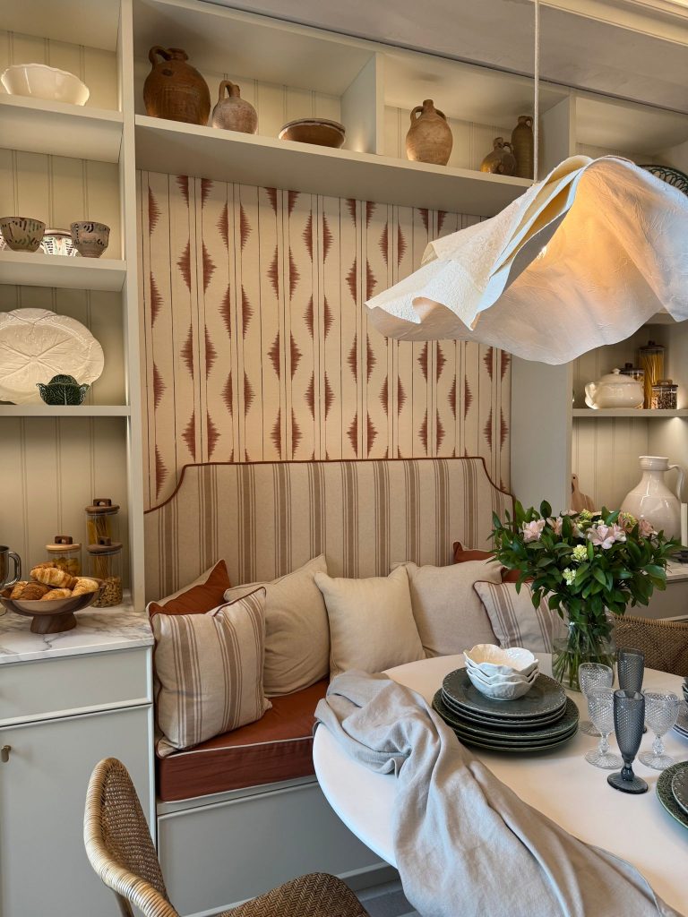 En las paletas de colores predominan los tonos tierra, mostazas, verde oliva, beiges,… Y materiales naturales, apostando por la sostenibilidad, como madera, piedra y fibras naturales.